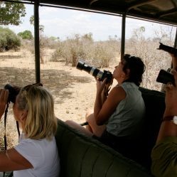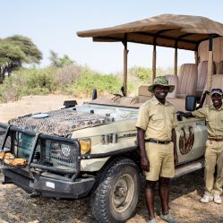 Our vehicles are specially adapted open sided 4WD vehicles each with comfortable seats and high shade awning to enable one to stand and still be in the shade whilst game viewing. Each vehicle is equipped with reference books, beanbags for photography, drinks and all the necessities for a day in the bush. All guides and drivers have direct communication with the camp from the vehicles.